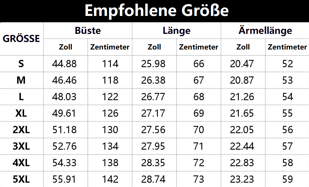 • Vorschlag:* Diese Daten wurden aus der manuellen Messung des Produkts erhalten, es kann um 0,03-0,06 ZOLL/1-3 CM aus geschaltet sein