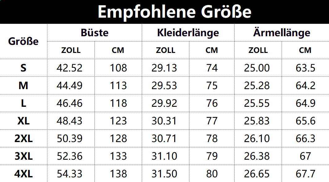 Größen tabelle: