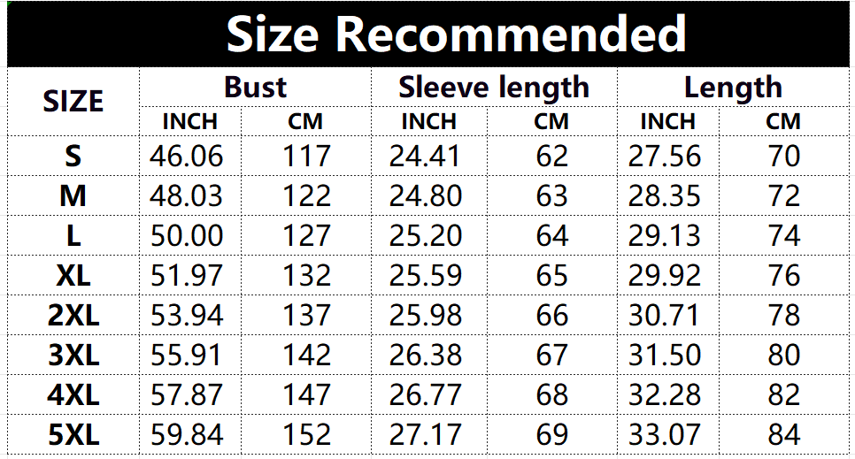 Größen tabelle: