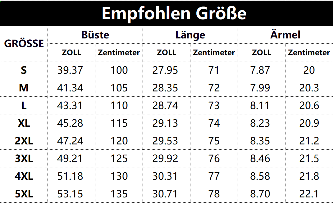 * Diese Daten wurden aus der manuellen Messung des Produkts erhalten, es kann um 0,03-0,06 ZOLL/1-3 CM aus geschaltet sein